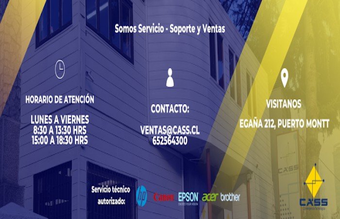 En Cass S.A., entendemos que la tecnología es un pilar fundamental para el éxito de cualquier negocio o proyecto personal. Nos especializamos en brindar servicios de Asistencia Técnica de Informática de la más alta calidad en Puerto Montt y la región de Los Lagos. Con años de experiencia, nuestro equipo altamente capacitado está preparado para solucionar cualquier problema que pueda surgir con sus equipos informáticos. Desde la reparación de computadoras, laptops y servidores, hasta el mantenimiento preventivo para garantizar el óptimo funcionamiento de su hardware, ofrecemos soluciones completas y adaptadas a sus necesidades específicas. También nos encargamos de la instalación y configuración de software, la actualización de sistemas operativos y la resolución de problemas de conectividad. En Cass S.A., nos distinguimos por nuestro compromiso con la calidad, la rapidez y la transparencia. Priorizamos la satisfacción de nuestros clientes y nos esforzamos por ofrecer un servicio personalizado, confiable y con un precio competitivo. ¡Confíe en nosotros para mantener sus equipos funcionando sin problemas y maximizar su productividad! Ubicados estratégicamente en Egaña 212, 5502544 Puerto Montt, Los Lagos, Chile, estamos listos para atenderle.